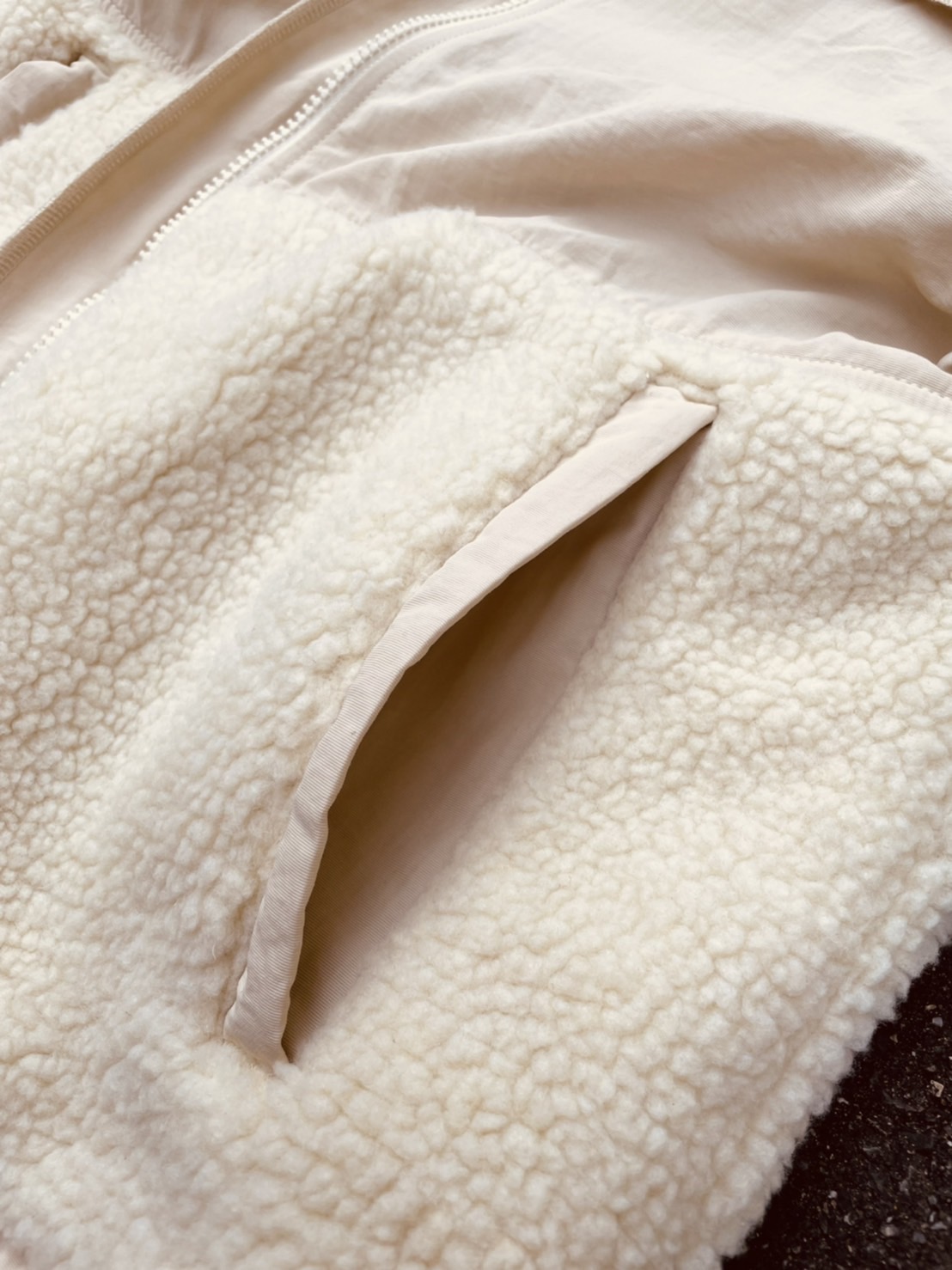 裏地にはパンチングメッシュを使用していて、ゆとりのあるサイジングと大きめのアームホールで着用しやすく、