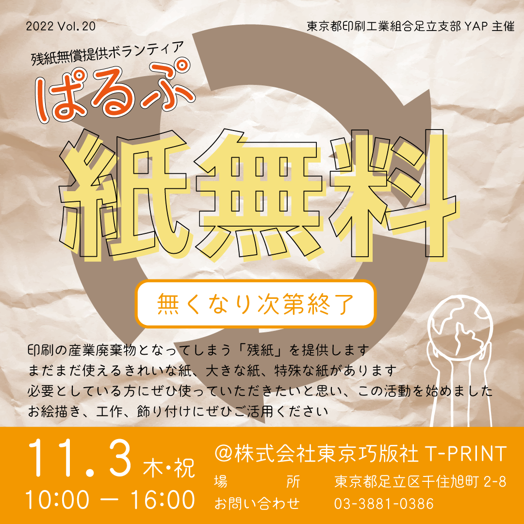 今年も印刷であまった紙を無料であげちゃうイベント開催決定!!