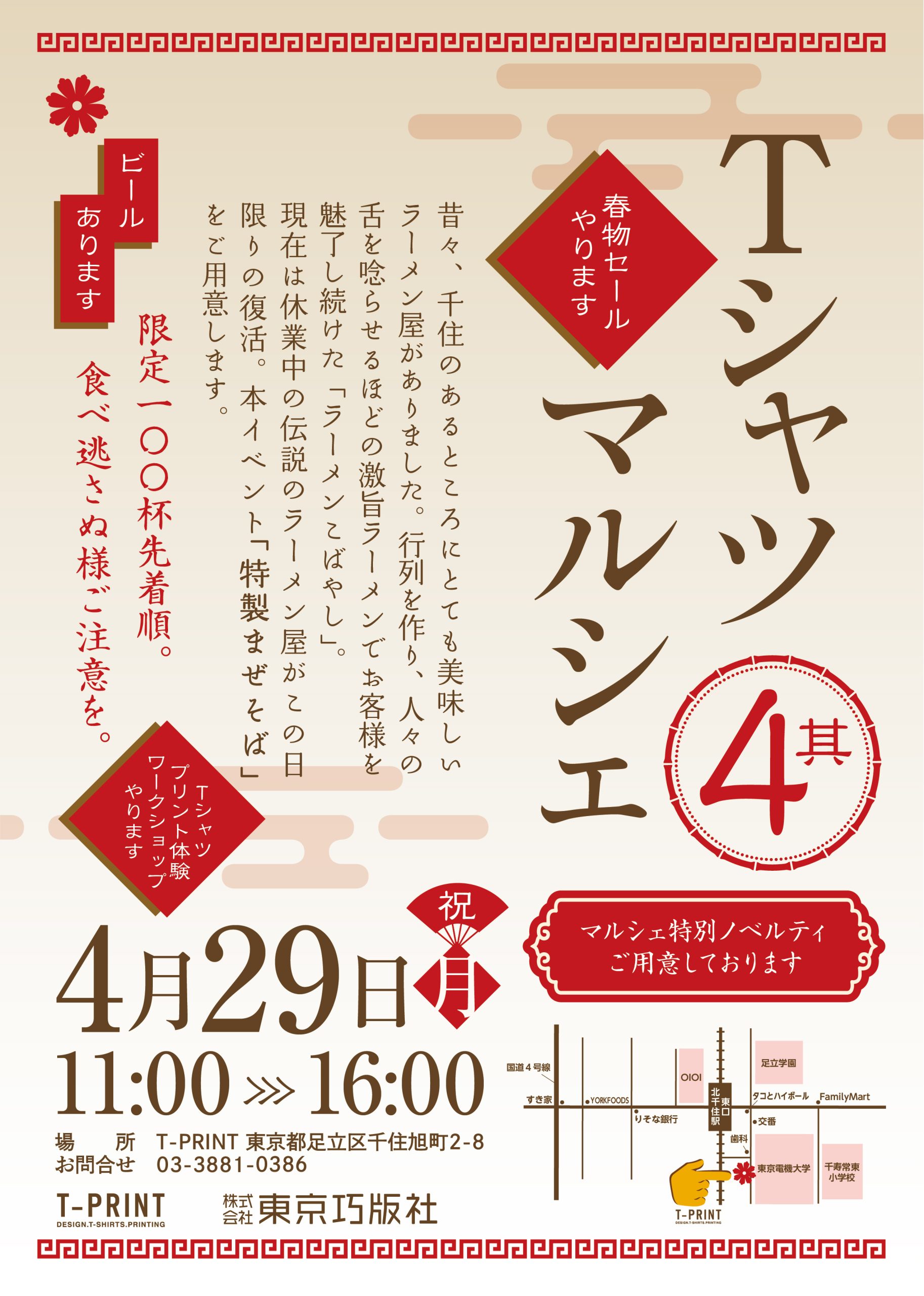 また、Tシャツの春セールに加えて、プリント体験ワークショップ!